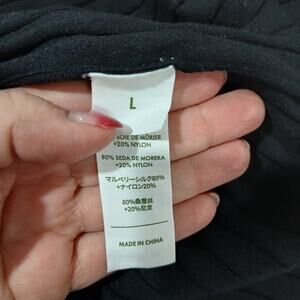 Lilysilk Vivi Dress Womens Large Black Silk Knit Pleated Midi Long Sleeve NWT