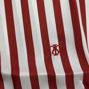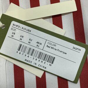 New with tags. This luxurious silk button-down top from Lilysilk blends classic stripes with soft, dreamy fabric. With vibrant red and clean white lines, it's a timeless piece that transitions seamlessly from office to evening.