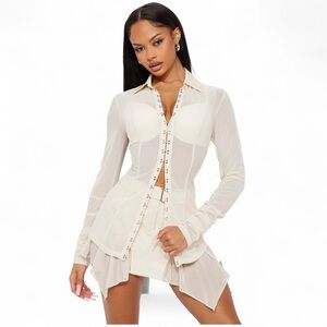 Lima Sheer Long Sleeve Mesh Top - Cream M