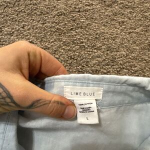Lime Blue Lightweight Shirt Womens Large Chambray Long Sleeve Button Down Tunic
