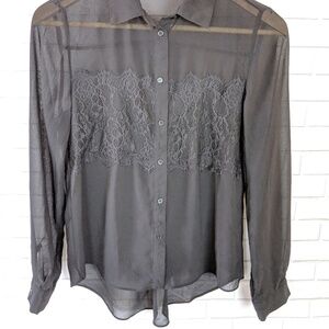 Lime Blue Shirt Womens Small Black Sheer Lace Blouse Whimsigoth Witchy Victorian