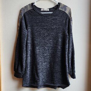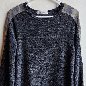 Lime & Chili Dark Gray/Camo Scoop Neck Jersey Size Large. Polyester/rayon blend. Soft and cozy for fall. Excellent condition.