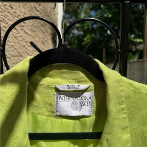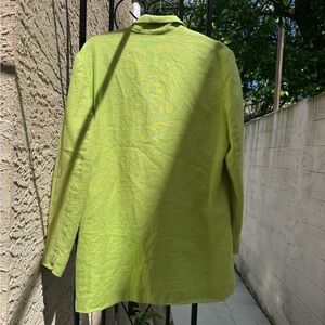 Elevate your style with this vibrant lime green blazer. Perfect for adding a pop of color to any outfit. Crafted from a comfortable linen blend, it's ideal for both casual and formal occasions. Oversized fit