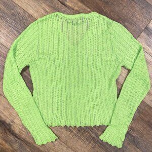Lime Green COTTAGECORE Crochet Sweater CROPPED CARDIGAN L Whimsy Indie Y2K Boho