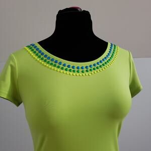 Lime Green Embellished Stretchy Pullover Short Sleeve Top by Ruby Red