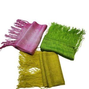 Lime Green Glitter Embellish Long Rectangular Scarf Tassel Shawl