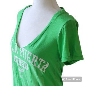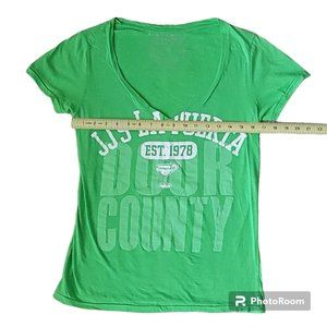Lime Green Marguerita Graphic Deep V Tee J.J.'s La Puerta Womens Size M New