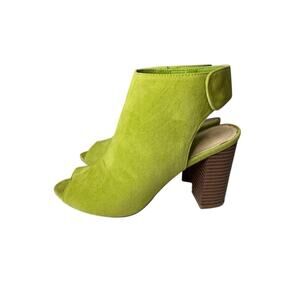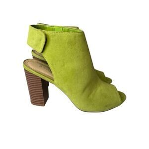 Lime Green Peep Toe Booties Slingback Heels 6.5 M Bamboo Brand Neon