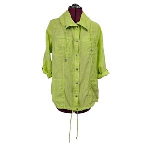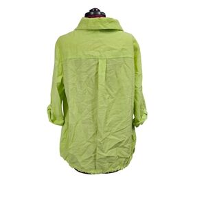 Lime Green Roll Tab Sleeve Hem Drawstring Light Shacket Womens
