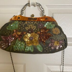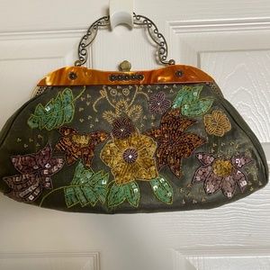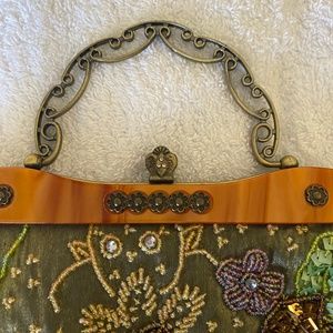 Lime Green Satin Beaded Purse Beautiful, Handle or Crossbody Straps