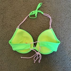 Lime green with pink and white rope tie halter bikini top from Victoria's Secret. Under wire and a little push up padding.. Worn once, great condition
