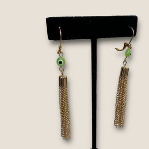 Lime Green evil eyes earrings gold plated chain design 2.5 “ long