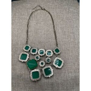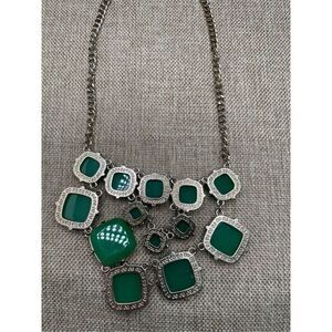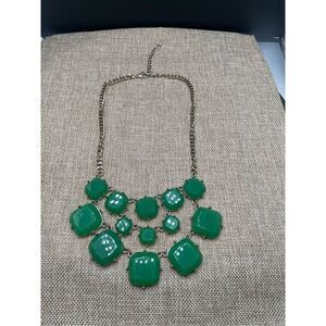 Lime Green Square Cabochon Open Back Cluster Statement 18" Gold Tone Necklace