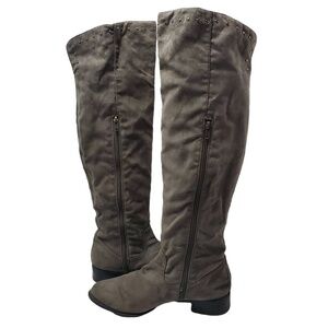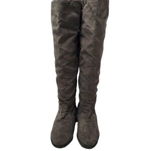 Lime Light Joaquin Faux Suede Studded Knee High Tall Gray Riding Boots Size 9