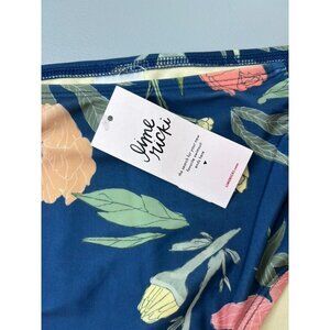 Lime Ricki women's XL blue floral blooms ruched high rise swim bottoms NWT