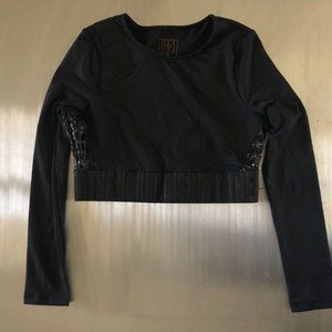 NWOT Black Hologram Panel Cropped Long Sleeve Tee from Lime & Vine. Crew neck, long sleeves. Silicone trim detail throughout. Hologram panel throughout.