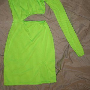 Lime green one shoulder cutout dress UK size 6 which is US size 2