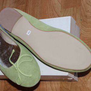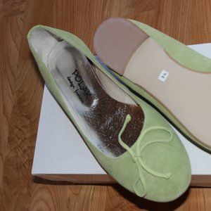 Lime color leather flats for women offered in big hard to find sizes. Only 2 left.