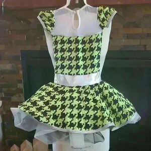 Lime houndstooth print dance costume.