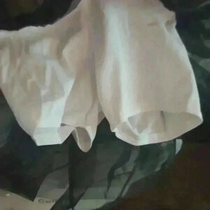 Sheer mesh neck yoke with elastic neckline and keyhole ghook closure, center front pinch, shirred cap sleeve, silver waist inset, silver hemmed houndstooth topskirt with 2 layer tricot underskirt (1 white, 1black) and attached shorts.