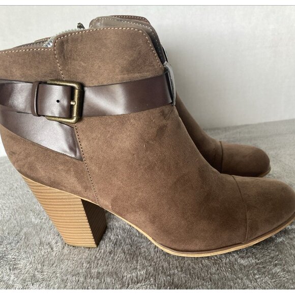 Limelight Brown Jena Faux Leather Booties size 11 3" heel Business office casual