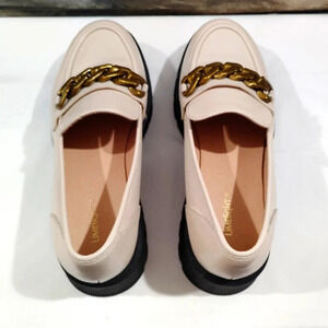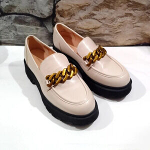 Limelight Kendall Loafers Chunky Heel Lug Chain Detail 8 1/2 8.5 Beige