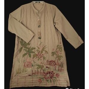 Limelight ~Woman Size L~ Brown Kurta Embroidered Dress Tunic Long Sleeve.