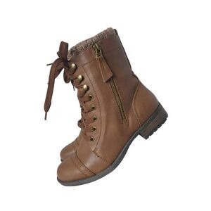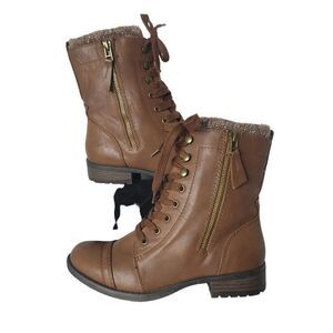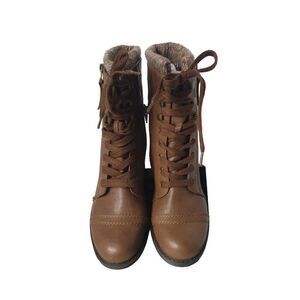 Limelight Women's Taya Brown Faux Leather Ankle Boots Zipper Lace-Up Design 8.5