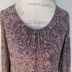 Limited : EUC Peach, Black and Blue patterned Blouse. Soft Lightweight fabric