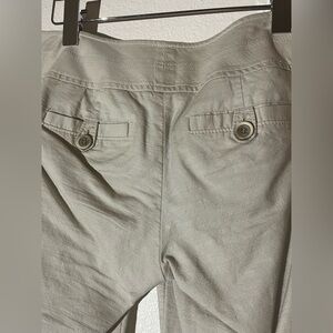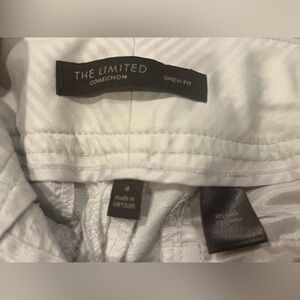 The Limited Collection beige tan pants. Size 4. Hemmed to 29” so listed as petite. Waist approximately 15”. Cotton 98% and 2% spandex. Standard pockets, rear pockets. 2 button closure with zipper.
