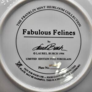Limited Edition Colorful Laurel Burch Fabulous Felines Porcelain Plate. Mint condition - no chips or cracks. NOTE: stand is not included. Add a pop of color to your decor with this limited edition Fine Porcelain Decorative Plate by Laurel Burch for Franklin Mint. Featuring fabulous felines in vibrant hues, this stunning plate is a must-have for any cat lover's collection. Get yours today and elevate your home with this exquisite piece!