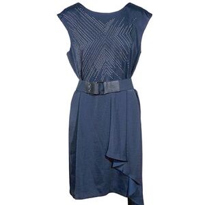 Limited Edition 2010 BCBGMaxAzria Runway Studded Navy Belted Sheath Asymmetrical