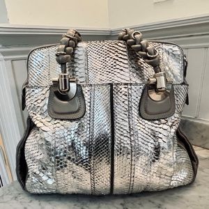 Chloe Silver Python shoulder bag with grey / silver leather accents and silver hardware.