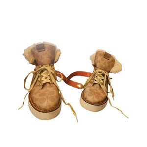 Limited Edition Coach Monogram Shearling-Lined Winter Boots Size 6B, Tan/Brown