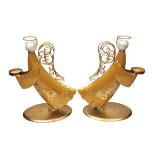Limited Edition Gold Metal Angel Silhouette Votive Candle Holders Christmas 14"