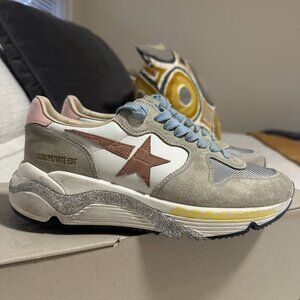 Limited Edition Golden Goose Running Sole Sneakers, white/grey/mauve, size 37