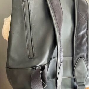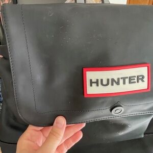This limited edition Hunter backpack in collaboration with Target is a must-have for any outdoor adventure! It measures 14in x 14in x 6in and is made of a durable nylon and PVC materials with the distinctive Hunter logo accent. It has adjustable straps, a top handle, a red fabric interior, and a flap closure with a buckle and magnet. It has several pockets, including an inside pocket, a front pocket, and two outside pockets. Its exterior is a slick, water-resistant vinyl. This bag was never used, but my cats scratched the top flap and the front pocket (shown) when I had it laying oiut. There are a couple of small grey-ish blemishes on the front - I have no idea where they came from (shown.) These flaws are not very pronounced, but the bag is priced accordingly.