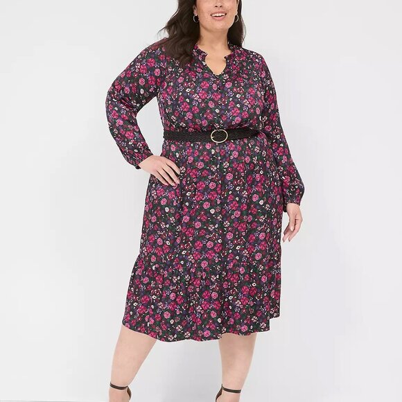 Limited Edition Lane Bryant Midnight Floral Midi Ruffle Dress