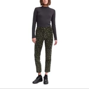 ** Description: High rise, straight leg, cropped flattering fun design with green velvet feel leopard.