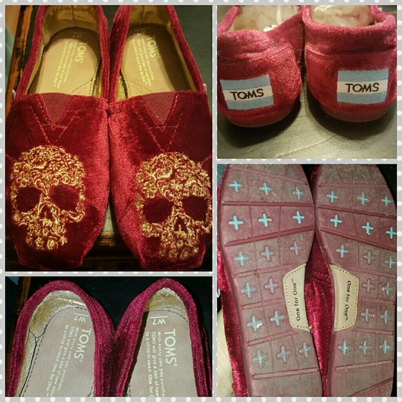 Red Velvet Toms with Gold Skull