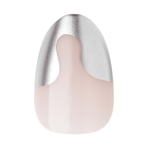 Silver tipped nude French fashion nails are short length & oval shaped with a chrome finish