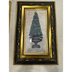 Limited Edition Topiary Fig prints by Kathryn Clarke Gold & Black Frames Vintage