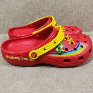 Elevate your summer footwear game with these brand new Limited Edition Crocs Magically Delicious Lucky Charms clogs. Made for both men and women, these casual shoes are perfect for a day at the beach or a casual stroll around town. They fit men's size 10/ women's size 12. The rubber upper material ensures comfort and durability, making them the perfect addition to your shoe collection. These clogs boast a fun and playful style, with the Lucky Charms design adding a touch of whimsy to any outfit. Whether you're running errands or enjoying a lazy summer day, these Crocs are the perfect choice. There is minor discoloration located on the right clog shoe. Please view the last photo!