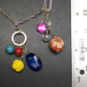 Limited Express brand, new on card, asymmetrical Silvertone necklace with multicolored beads in shapes including round, flowers and faceted! Includes bead with flowers painted on it! #SilverNecklace #LimitedNecklace #LimitedExpressNecklace #ExpressNecklace #AsymmetricalNecklace #MulticolorNecklace #FlowerNecklace #RetroNecklace #BoHoNecklace