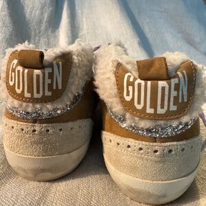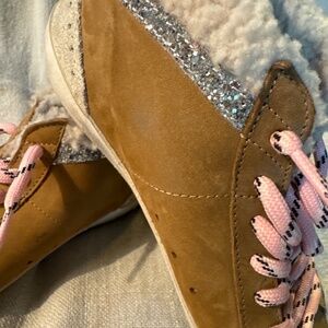 Suede with sherpa fleece pink laces silver sequins and black star as shown like new