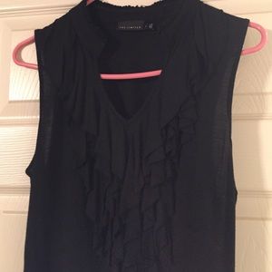 Limited brand, black split round neck tank, ruffle front, knit fabric, size L