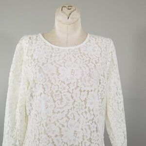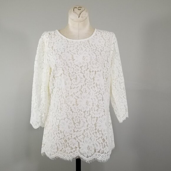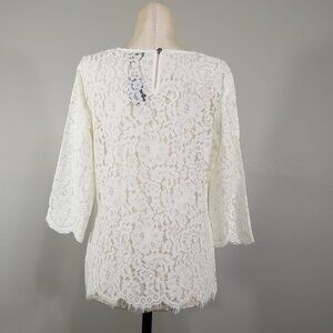 Limited Sheer Lace Blouse Chantilly Womens Top Scalloped Sz XS Floral Ivory NWT