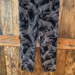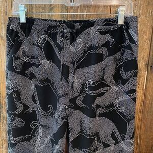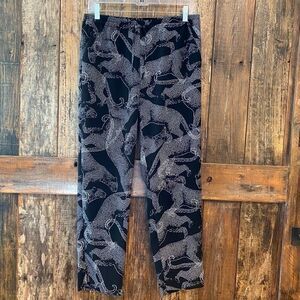 Limited Sz S Black Animal Print Panther Cinched Pocket Lounge Casual Work Pants