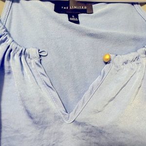 Periwinkle colored tank top from The Limited. Front is shimmery, back is not. Very comfortable and perfect for all occasions. Has small gold button at the top you can leave open or closed. Make me an offer!