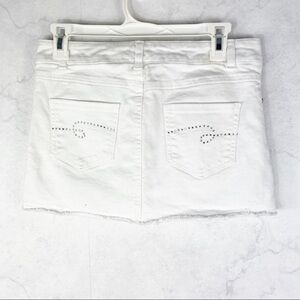 Limited Too Classic White Jean Skirt. Front & Back Pockets. Belt Loops. Button & Zip Fly. Raw Cut / Fringe Frayed Hem. Cute & Comfy. No Stains or Rips.